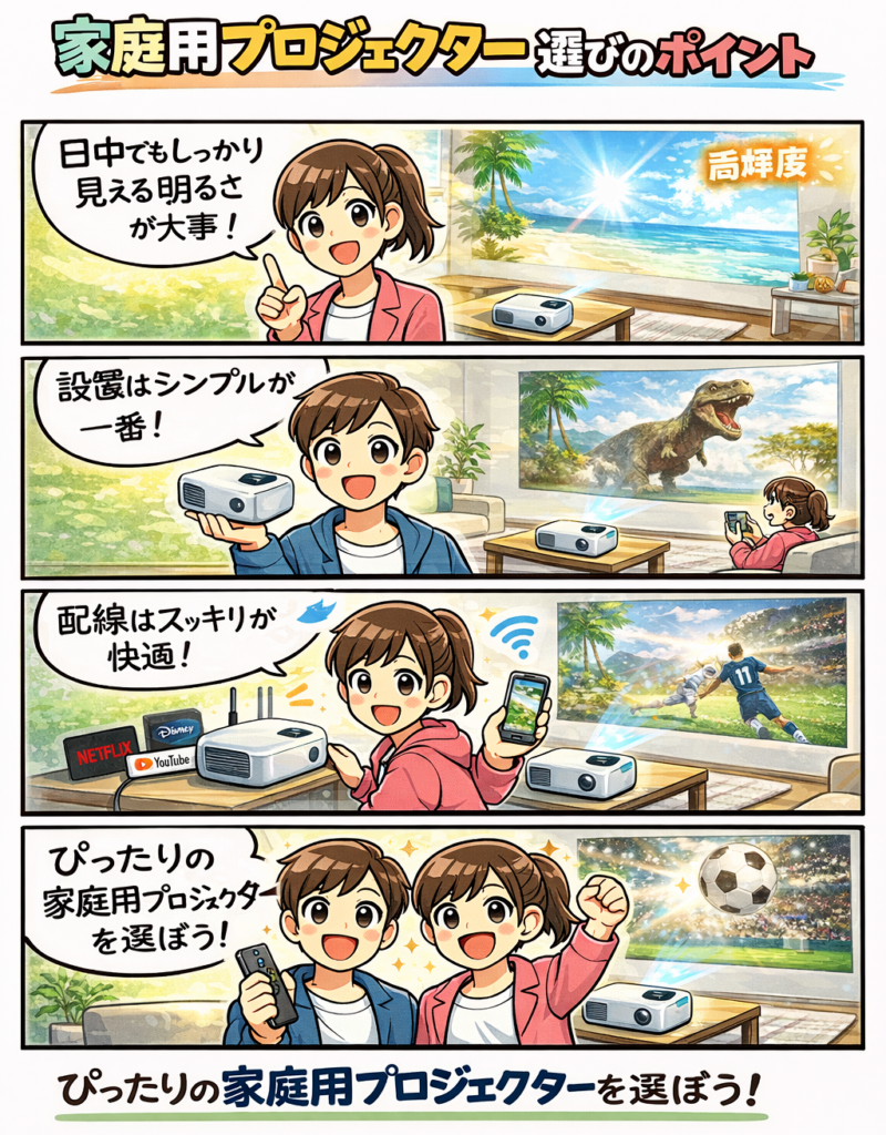 【2026年4月最新版】「昼間は見えない」「設定が面倒」のイライラを卒業:家庭用プロジェクター3選